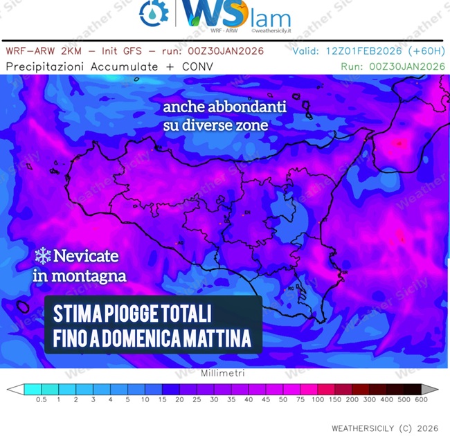 - Sicilia: peggioramento diffuso in arrivo sabato, residua instabilità domenica - 30 Gennaio 2026