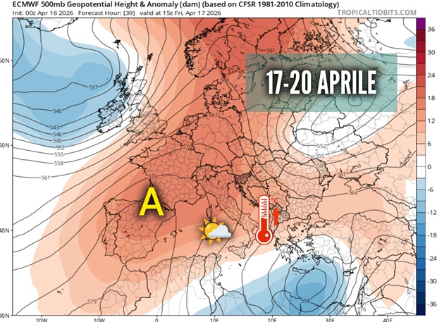TENDENZA 17-19 APRILE: LOCALE INSTABILITà DIURNA VENERDì, MIGLIORA NEL WEEKEND CON CLIMA MITE