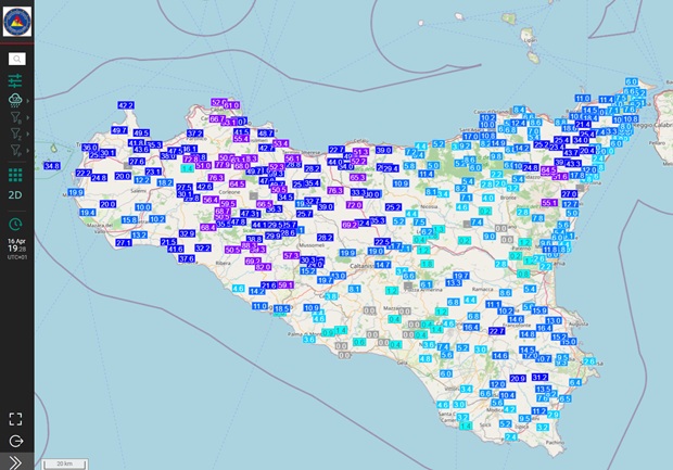 L’influenza della circolazione depressionaria ormai in allontanamento verso la Libia ha portato oggi le ultime note instabili, che lasceranno spazio a un netto miglioramento nei prossimi giorni. La fase di instabilità ha portato piogge e temporali intensi soprattutto tra palermitano e agrigentino (in parte trapanese), mentre gli effetti sono stati minori sui versanti ionici e orientali, come possiamo vedere dalla mappa del DRPC Sicilia con le cumulate di pioggia registrate negli ultimi giorni.