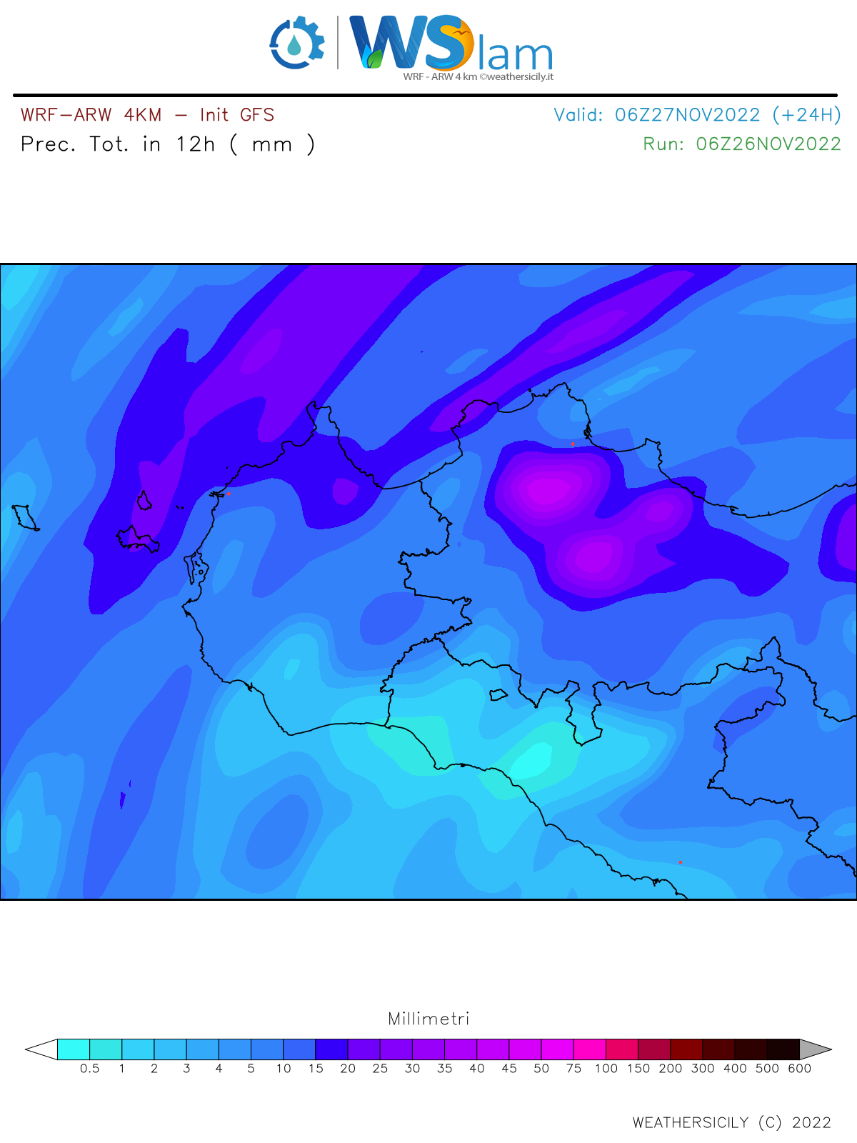 Maggiormente esposto risulta essere il settore montuoso della Conca D’oro, favorito dal fenomeno dello stau (ristagno delle nubi). Qui si potranno raggiungere e localmente superare i 70/80mm di pioggia complessivi da inizio peggioramento. Altro settore dove si potranno raggiungere accumuli abbondanti è quello montuoso Madonita, e il settore interno adiacente alla costa tirrenica. Le temperature risulteranno in graduale diminuzione, mentre la ventilazione si disporrà principalmente da NE.