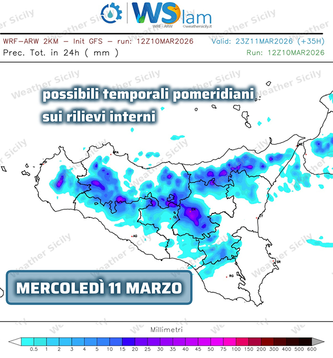 Nelle ore centrali della giornata è attesa nuovamente un po’ di instabilità, generalmente più attenuata e sparsa rispetto ai giorni precedenti, ma con la possibile formazione di qualche rovescio o temporale localizzato (anche intenso) sui rilievi interni, in esaurimento sempre entro sera.