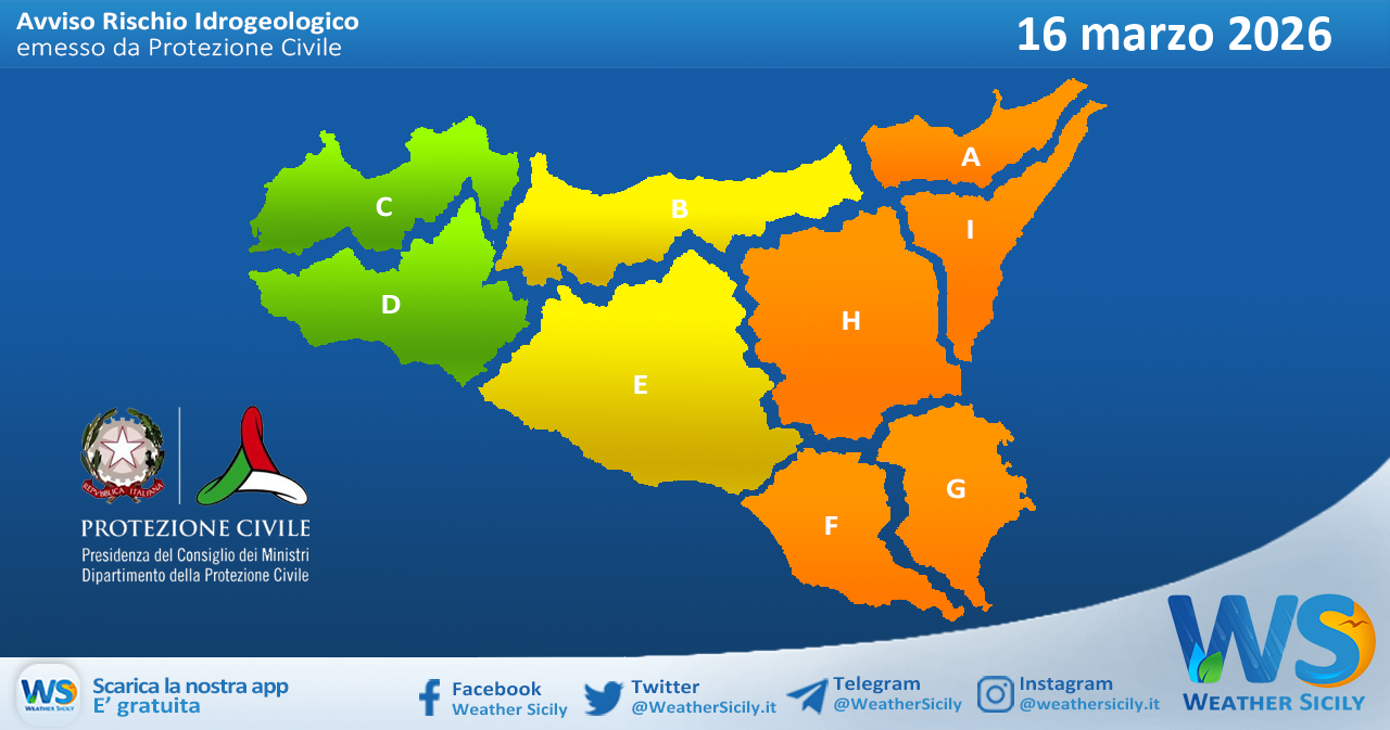 Home ALLERTE METEO Meteo Sicilia: bollettino di allerta meteo per domani, lunedì 16 marzo 2026