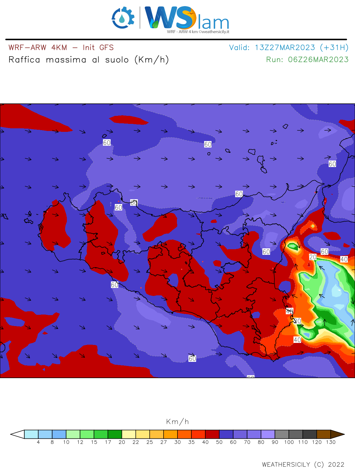 Riguardo le precipitazioni non ci attendiamo fenomeni degni di nota, se non qualche precipitazione sparsa e debole che dovrebbe/potrebbe interessare principalmente i settori settentrionali orientali dell’isola, con il messinese tirrenico ancora in pole. Altrove invece ritroveremo nuvolosità principalmente sterile. I Mari tenderanno a risultare molto mossi, specie il Tirreno ed il Canale di Sicilia, maggiormente esposti alla ventilazione occidentale.