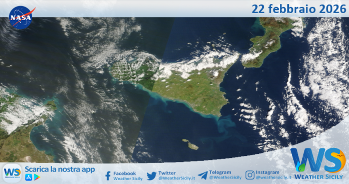 IMMAGINI NASA Meteo Sicilia: immagine satellitare Nasa di domenica 22 febbraio 2026 Di Redazione - 22 Febbraio 2026 0 37 FacebookTelegramTwitterWhatsAppCopy URL Tempo di lettura: < 1 minutiSalve amici di weathersicily.it. Come di consueto vi mostriamo l’immagine satellitare odierna della Nasa, di domenica 22 febbraio 2026, la quale ritrae la nostra isola.