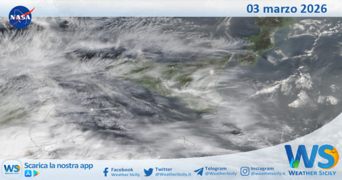 IMMAGINI NASA Meteo Sicilia: immagine satellitare Nasa di martedì 03 marzo 2026 Di Redazione - 3 Marzo 2026 0 21 FacebookTelegramWhatsApp Tempo di lettura: < 1 minutiSalve amici di weathersicily.it. Come di consueto vi mostriamo l’immagine satellitare odierna della Nasa, di martedì 03 marzo 2026, la quale ritrae la nostra isola.