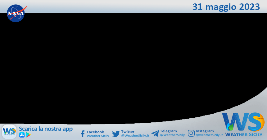 Salve amici di weathersicily.it. Come di consueto vi mostriamo l’immagine satellitare odierna della Nasa, di mercoledì 31 maggio 2023, la quale ritrae la nostra isola.