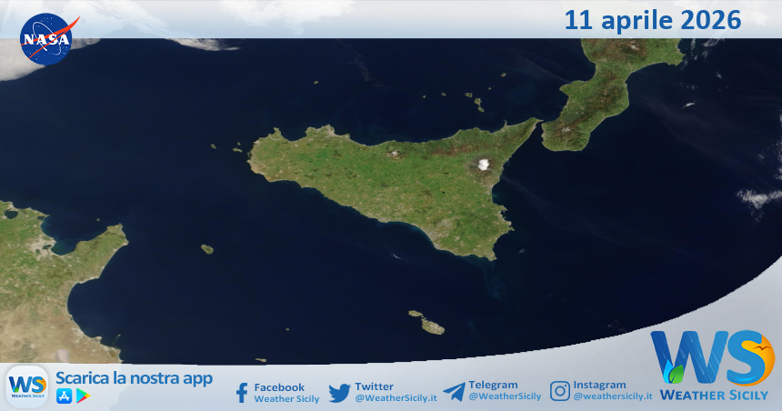 Salve amici di weathersicily.it. Come di consueto vi mostriamo l’immagine satellitare odierna della Nasa, di sabato 11 aprile 2026, la quale ritrae la nostra isola.