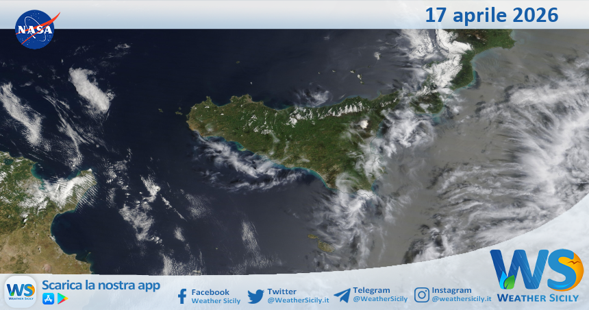 Salve amici di weathersicily.it. Come di consueto vi mostriamo l’immagine satellitare odierna della Nasa, di venerdì 17 aprile 2026, la quale ritrae la nostra isola.