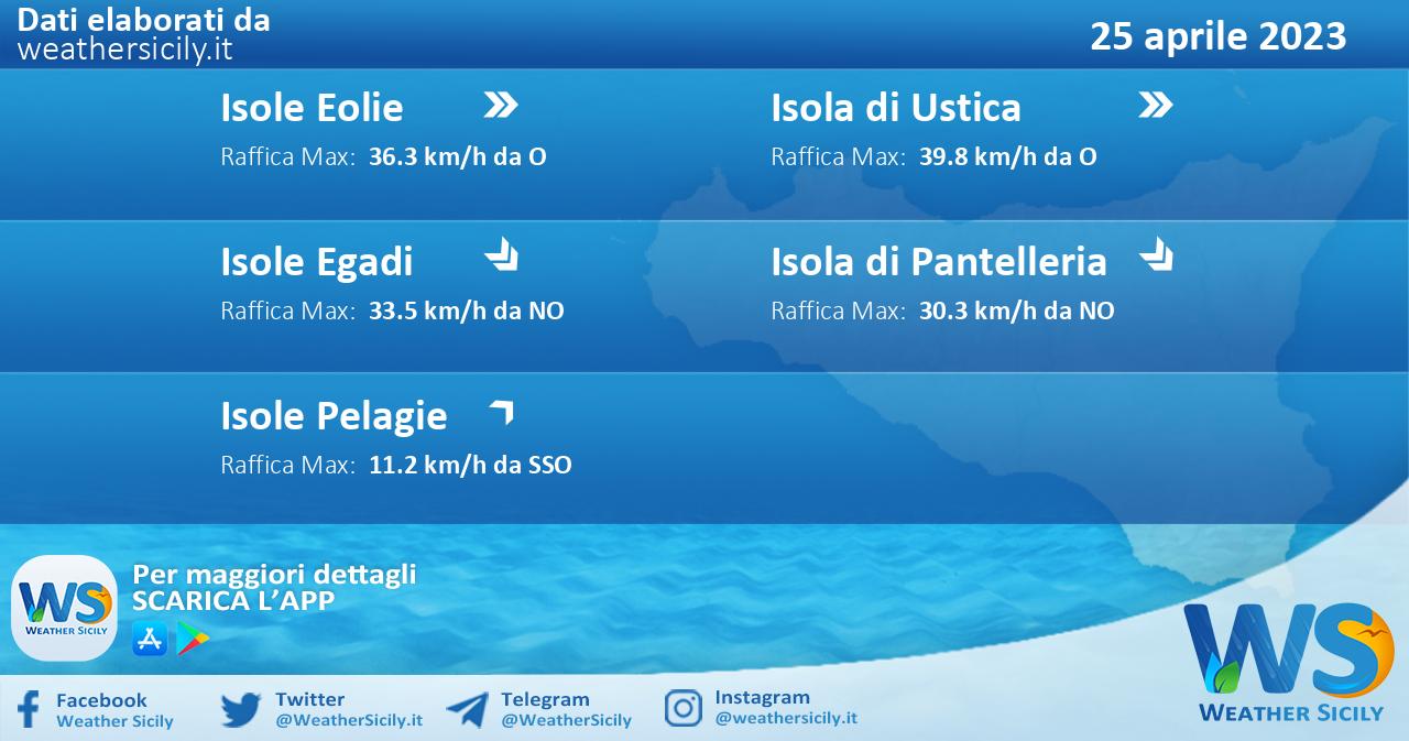 Salve amici di weathersicily.it. Di seguito, il bollettino giornaliero dedicato ai mari e ai venti per le isole minori della Sicilia. In allegato le condizioni meteo-marine previste per martedì 25 aprile 2023 sulle isole minori.
