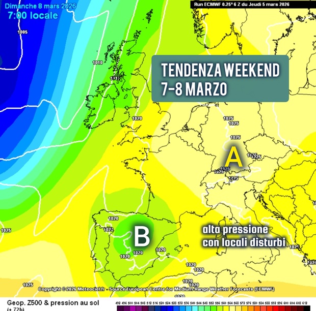 Si tratterà solo di un passaggio modesto (e non organizzato) nel corso di venerdì, tuttavia qualche disturbo potrebbe presentarsi anche durante il weekend. Infatti, mentre l’alta pressione tornerà a rinforzarsi, in quota persisteranno correnti più fresche e umide tali da causare eventuali condizioni di modesta instabilità (ad evoluzione diurna) che potrebbero caratterizzare anche l’inizio settimana.