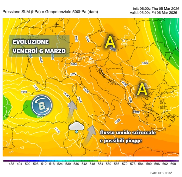 Tuttavia, la discesa di una nuova saccatura nord-atlantica in queste ore favorirà un avvicinamento della goccia fredda in quota, influenzando parzialmente il tempo sulla nostra regione.