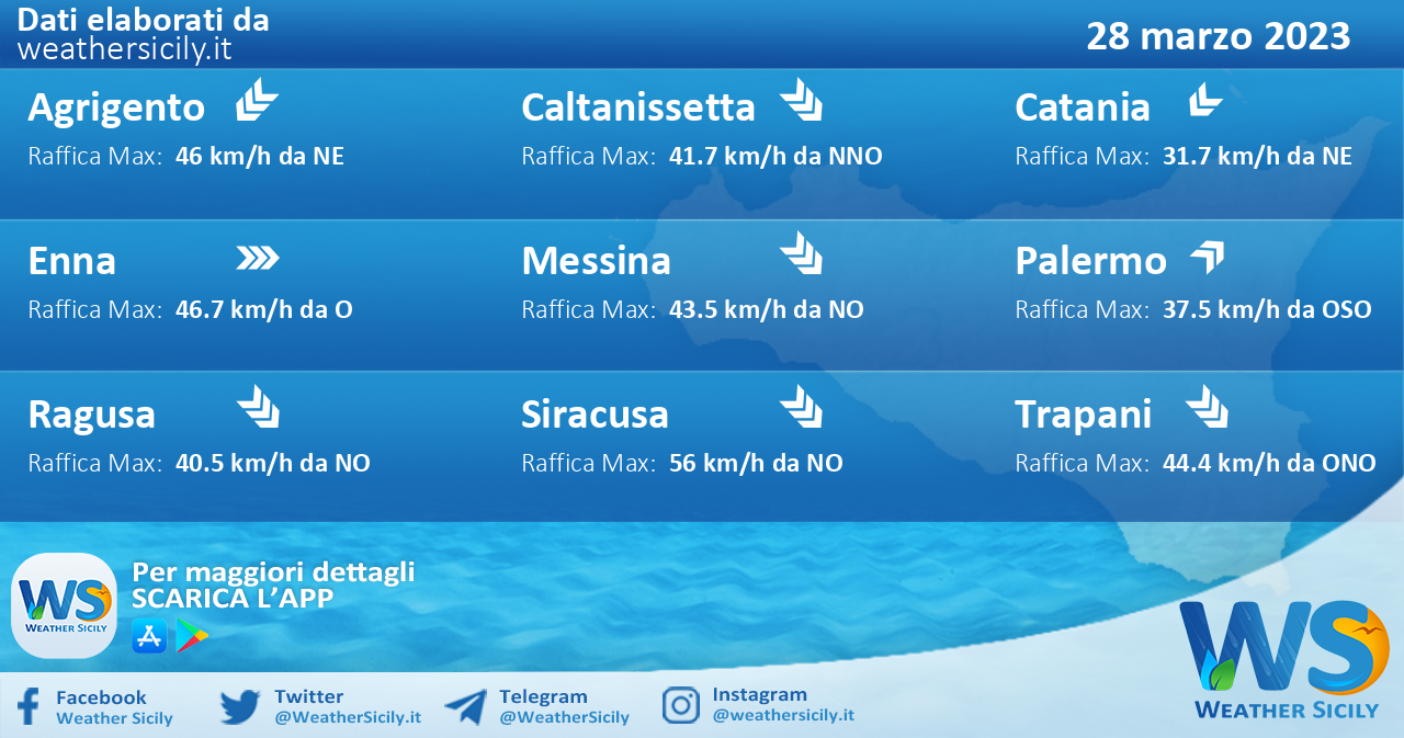 Salve amici di weathersicily.it. Di seguito, il bollettino giornaliero dedicato ai mari e ai venti per le principali città siciliane. In allegato le previsioni meteo del vento e del mare previste per domani,martedì 28 marzo 2023: