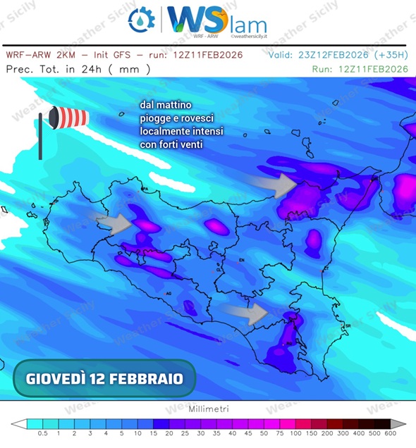 Come detto, dal mattino di giovedì sono anche attese piogge diffuse al transito del fronte perturbato, con rovesci e locali temporali accompagnati da forti raffiche di vento.