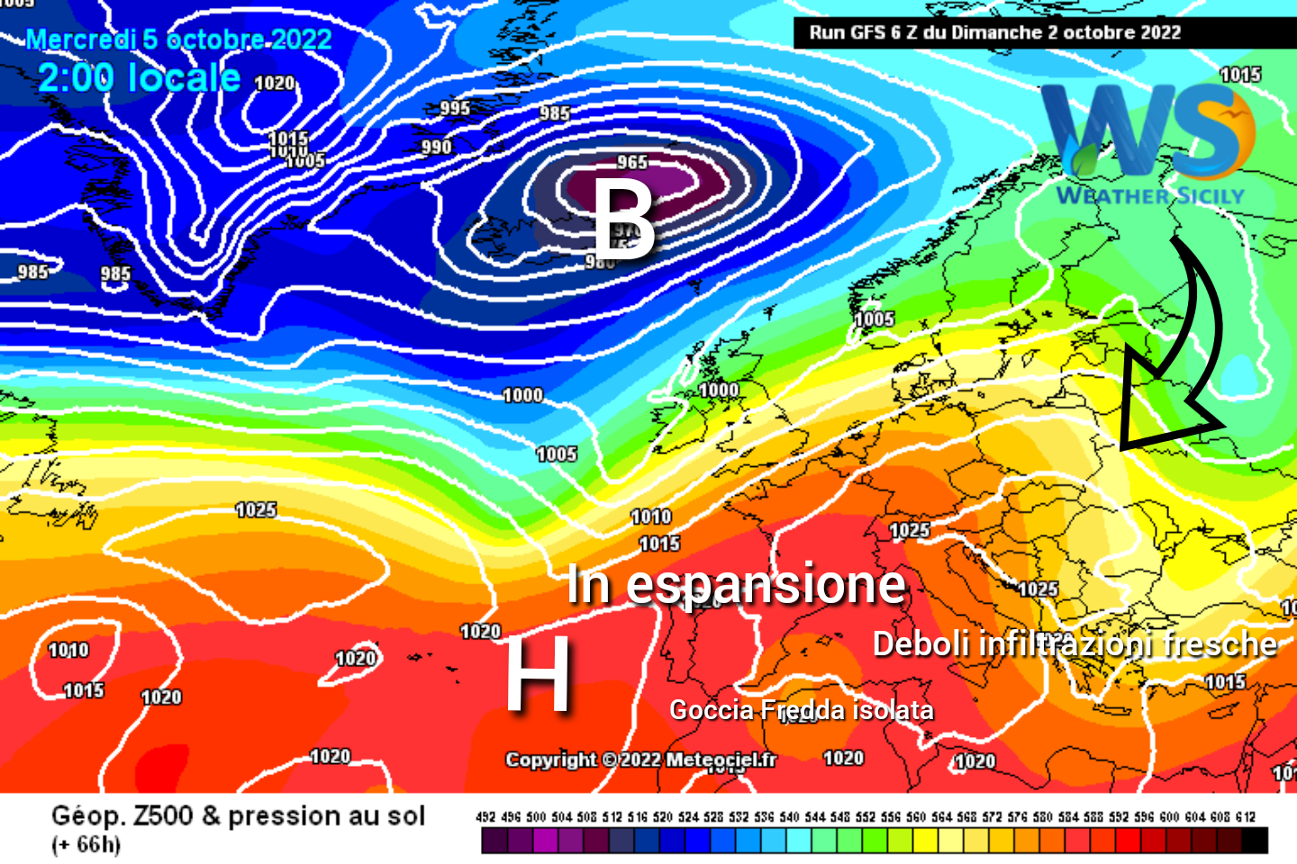 Dalla seconda parte di martedì, e ancor più mercoledì 5 ottobre 2022, un lieve calo del geopotenziale in quota, dovuto a deboli infiltrazioni da est, consentirà un ritorno in media delle temperature, e locale debole instabilità sulle zone interne. Non ci attendiamo precipitazioni lungo le zone costiere, dove le giornate dovrebbero trascorrere in un contesto di maggiore variabilità.