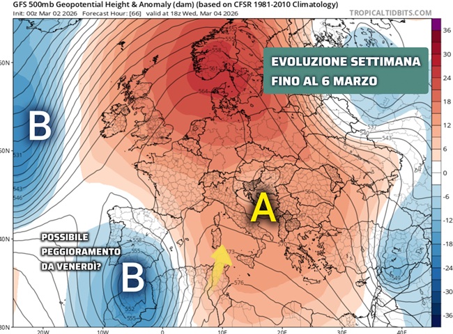 La struttura anticiclonica potrebbe risentirne ulteriormente, lasciando spazio a maggiori disturbi e un possibile peggioramento su diverse zone. Tuttavia, questa tendenza modellistica andrà riconfermata nei prossimi giorni.