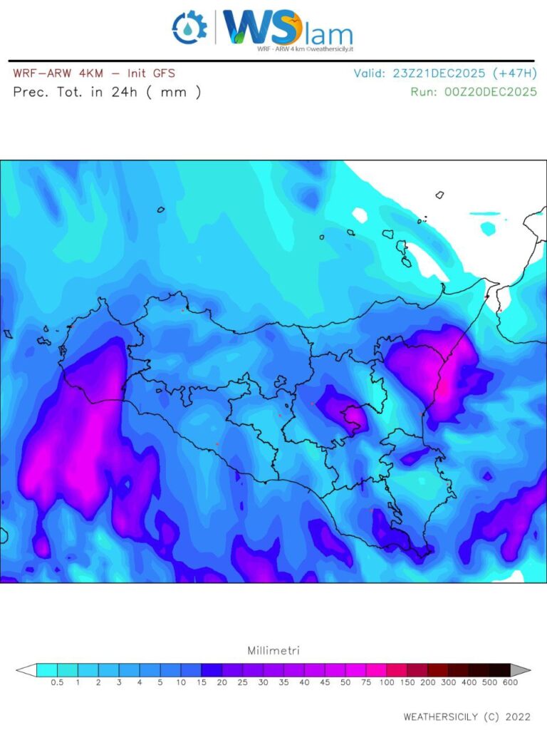 Seppur il tutto in un contesto mite per il periodo, i settori che maggiormente sono stati coinvolti dall’instabilità questa volta sono stati quelli sud-orientali e ionici dell’isola, dove localmente le centraline meteo hanno registrato fino a 60/70 mm di pioggia in 24h, specie tra ragusano e siracusano, e mediamente fino a 20-30 mm sulle zone centro orientali.