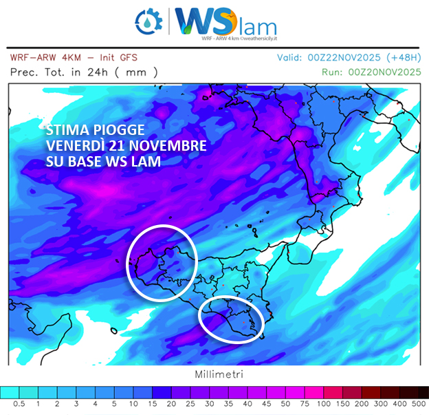 DETTAGLI PREVISIONE VENERDÌ 21 NOVEMBRE 2025