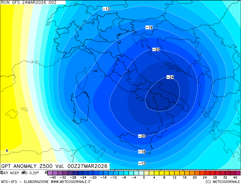Nei giorni scorsi vi avevamo accennato la possibilità che nel corso della seconda parte della settimana, una fase ancor più fredda ed instabile potesse interessare la nostra regione. Ebbene, stando ai dati modellistici in nostro possesso, tale situazione dovrebbe realmente concretizzarsi tra le giornate di giovedì 26 Marzo 2026, e venerdì 27 Marzo, quando dovremmo vivere una situazione da pieno inverno, con valori termici che se si manifestassero anche a gennaio, farebbero parlare di sé. Infatti, ci ritroveremo con valori termici nettamente inferiori rispetto la media stagionale. Il tutto merito di un affondo di aria molto fredda di origine artico marittima che condizionerà le medesime giornate sulla nostra regione.