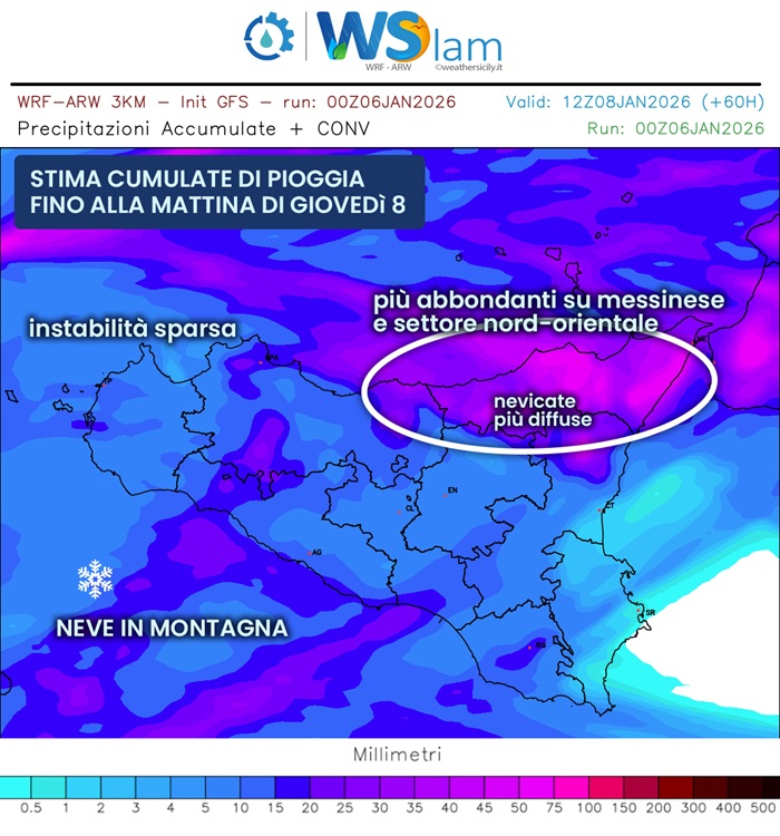 - Sicilia: breve impulso freddo artico, attesa instabilità con forti venti e neve a quote medio-alte - 6 Gennaio 2026