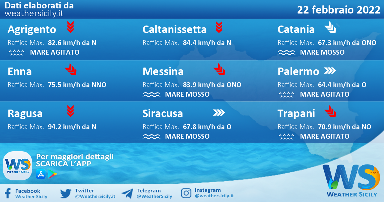 Salve amici di weathersicily.it. Bentrovati nel bollettino giornaliero dedicato ai mari e ai venti. In allegato le condizioni meteo-marine previste per martedì 22 febbraio 2022 sulle nove città sicule.