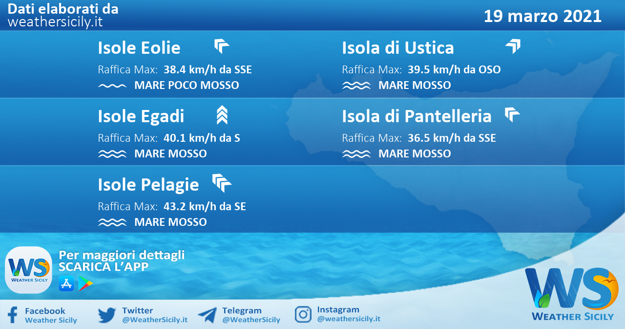 Salve amici di weathersicily.it. Bentrovati nel bollettino giornaliero dedicato ai mari e ai venti. In allegato le condizioni meteo-marine previste per venerdì 19 marzo 2021 sulle isole minori.