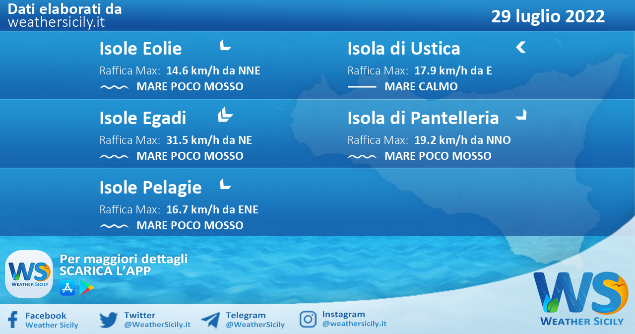 Salve amici di weathersicily.it. Bentrovati nel bollettino giornaliero dedicato ai mari e ai venti. In allegato le condizioni meteo-marine previste per venerdì 29 luglio 2022 sulle isole minori.