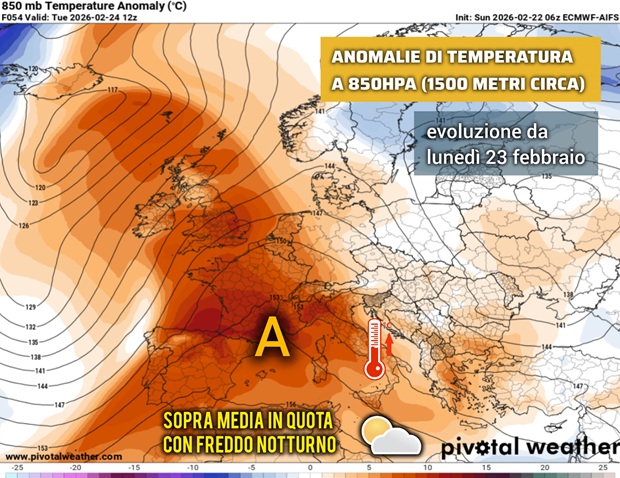 FINE FEBBRAIO CON FORTE SOPRA MEDIA TERMICO IN QUOTA
